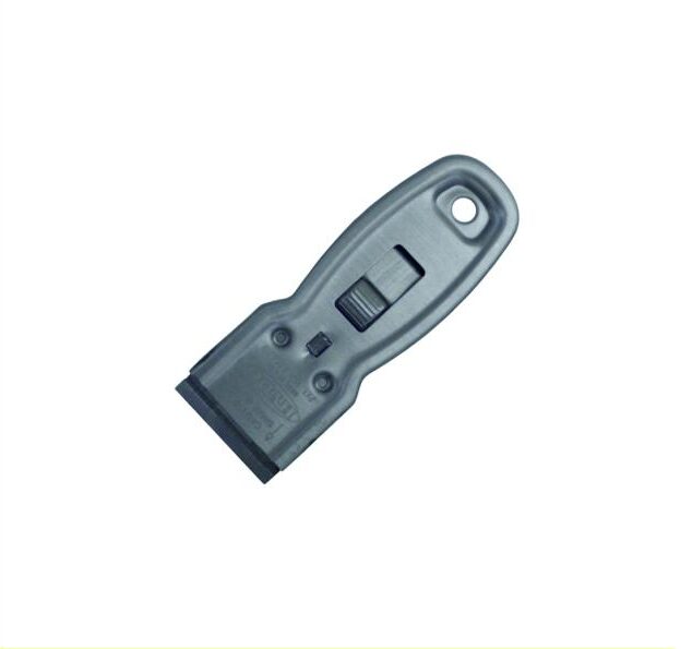 A retractable metal scraper, always within reach.