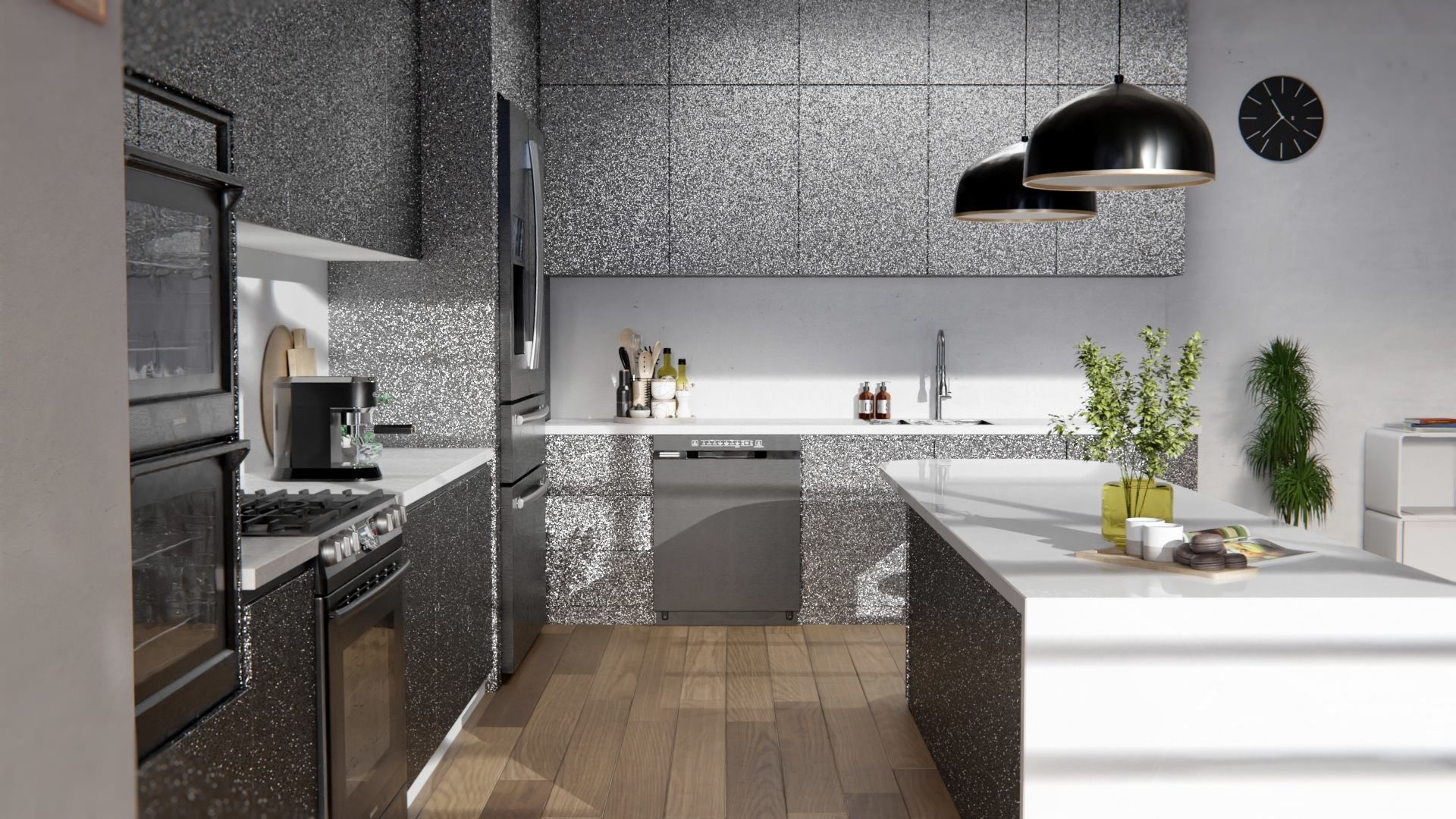 Self adhesive glitter effect vinyl wrap (architectural decorative film) for furniture, doors, kitchens, bathrooms, and walls – Cover Styl Silver Disco